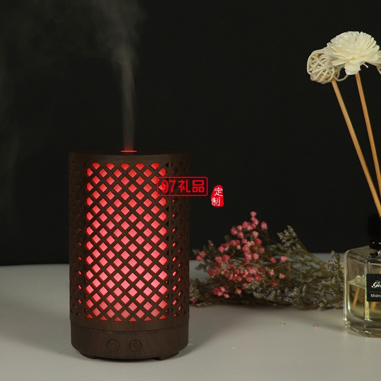 100ML新款鏤空格子木紋加濕器家用