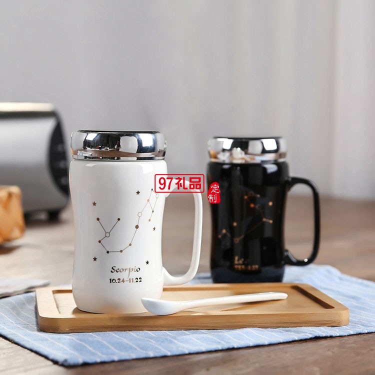 創意十二星座保溫杯家居陶瓷杯定制logo 馬克杯禮品盒裝日用百貨