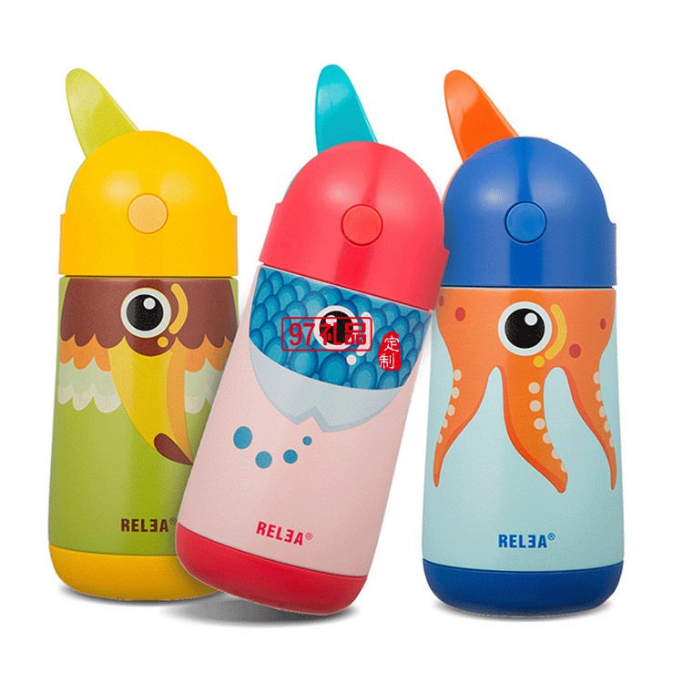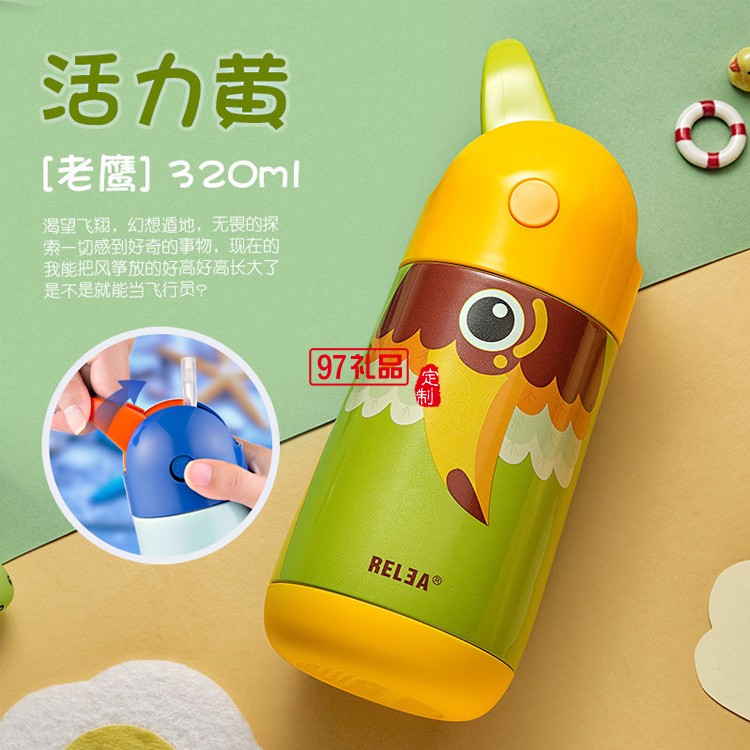 高檔兒童保溫杯吸管杯學生水杯可愛便攜水壺不銹鋼杯子 可定制logo