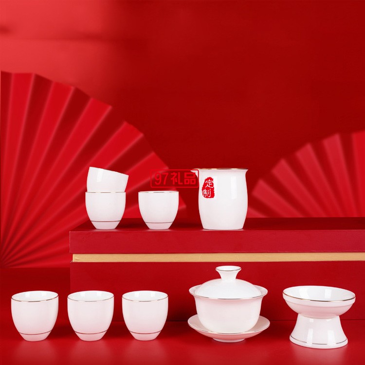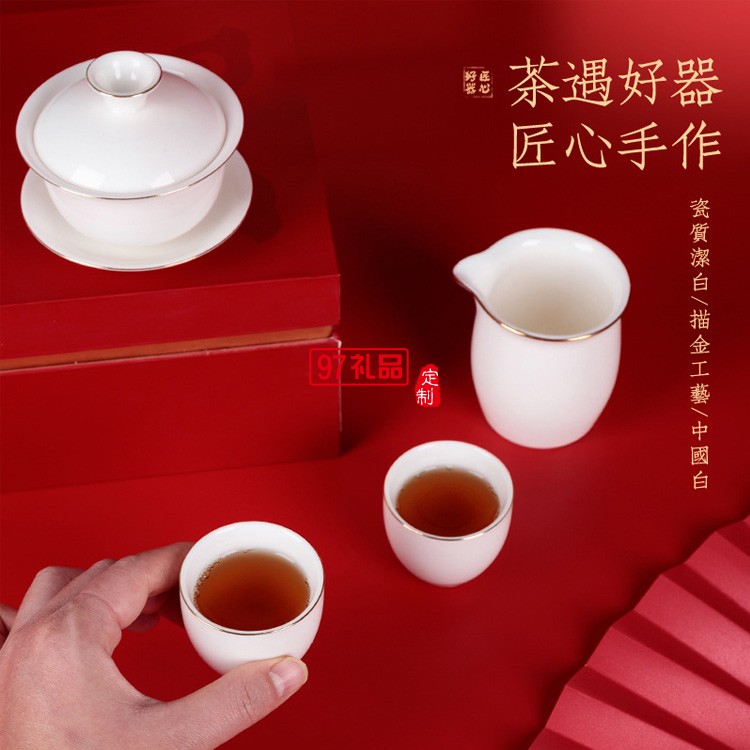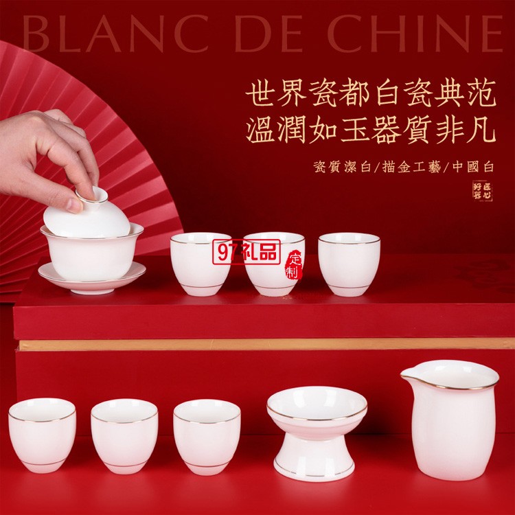 德化白瓷茶具套裝 羊脂玉功夫陶瓷茶具禮盒送客戶禮品定制