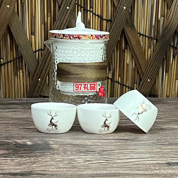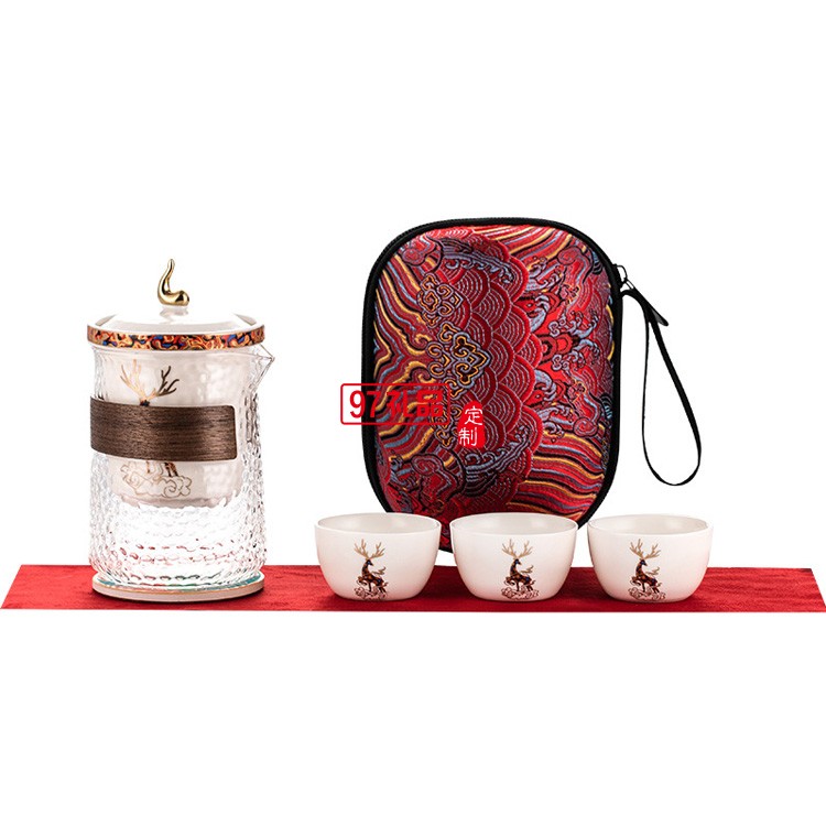 旅行茶具一壺四杯套裝商務logo禮品陶瓷茶壺戶外便攜干泡茶藝