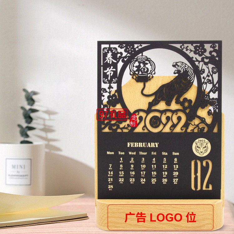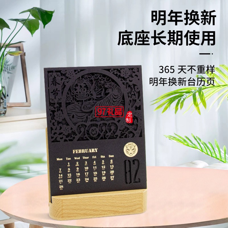 2022虎年臺歷鏤空紙雕辦公室桌面擺件