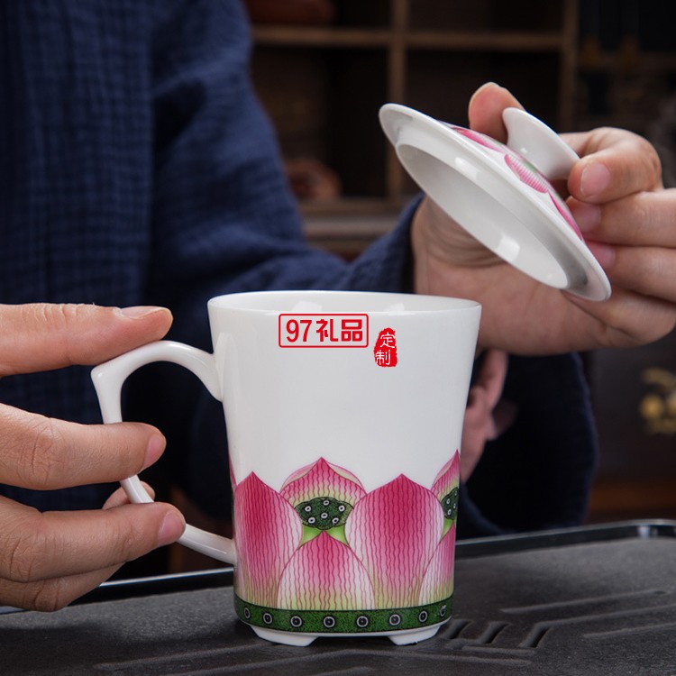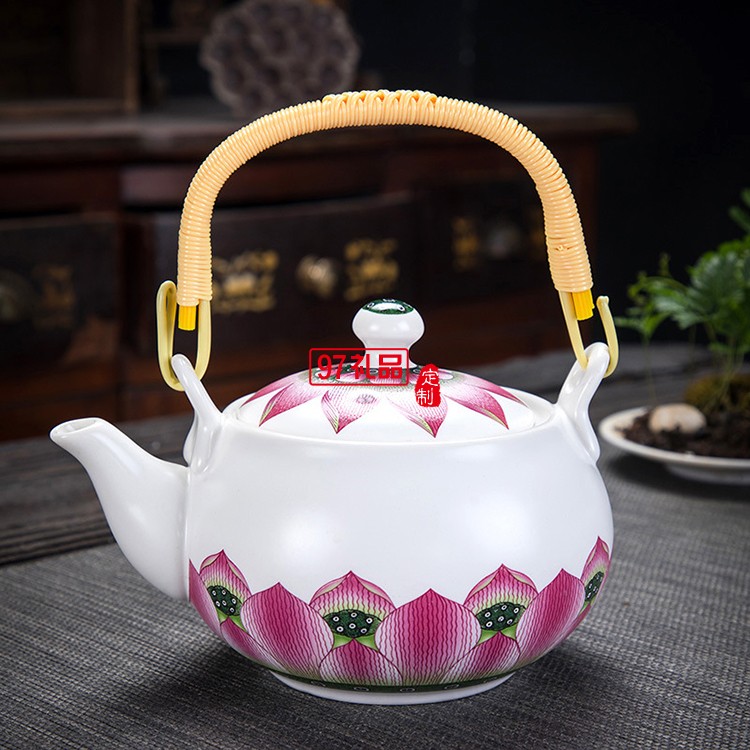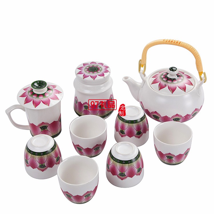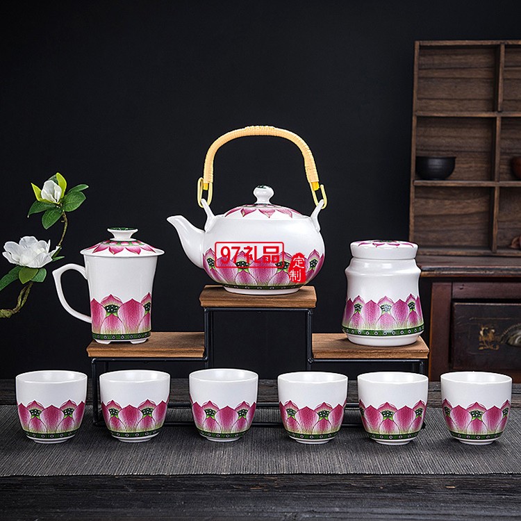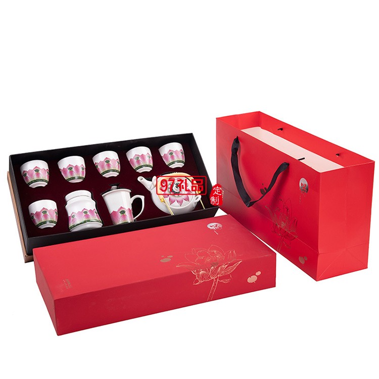 提梁壺一壺六杯帶茶葉罐水杯茶具套裝荷韻商務(wù)送禮