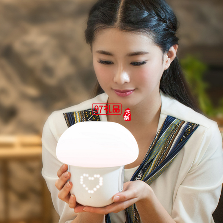 產品尺寸:16.5*16.5*17cm 凈重 0.9kg 包裝尺寸: 毛重:1kg 整箱重:15kg 裝箱數(shù):18/箱 內有 主機+USB充電線+3.5音頻線+說明書+保修卡 1.創(chuàng)意點陣燈飾:表達溫馨心情; 2.多色氛圍燈光; 3.高音質藍牙音箱; 4.真情錄音,留住溫馨; 5.溫情鬧鐘; 6.超長待機:48小時