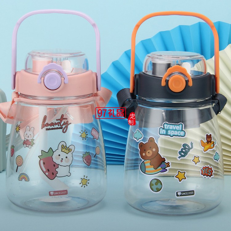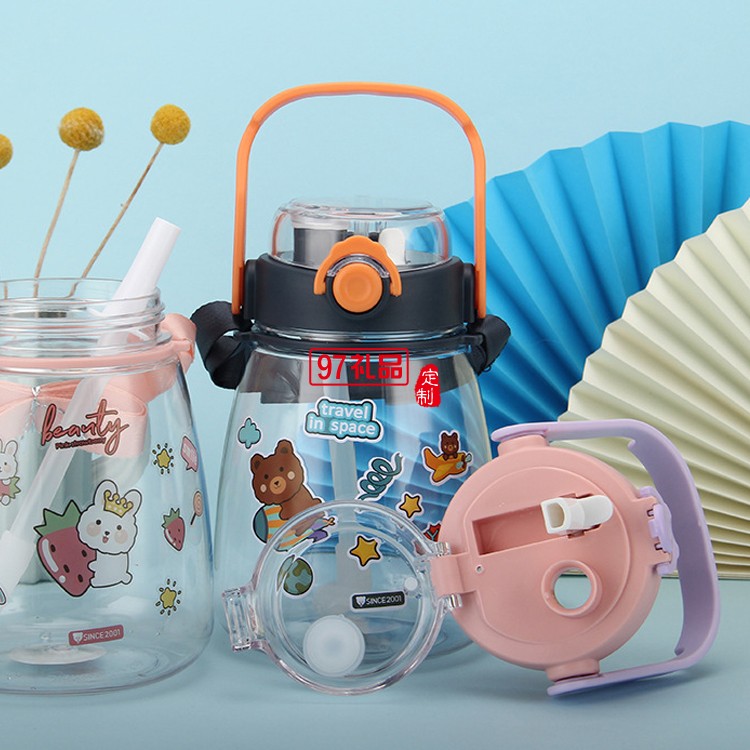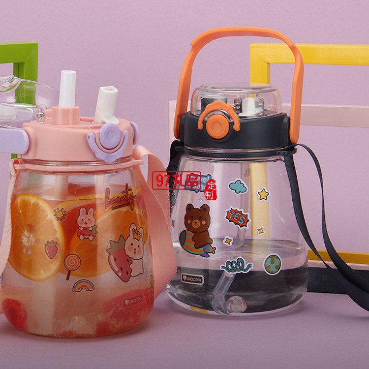 網紅高顏值塑料吸管杯兒童雙飲大肚子水杯大容量