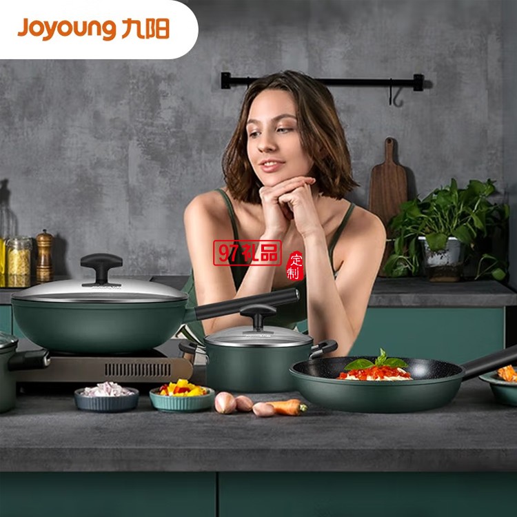 九陽(yáng)不粘炒鍋煎鍋湯鍋奶鍋三件套裝CF-T0563定制公司廣告禮品