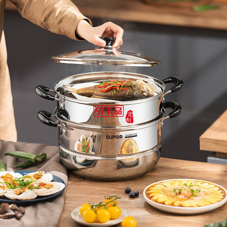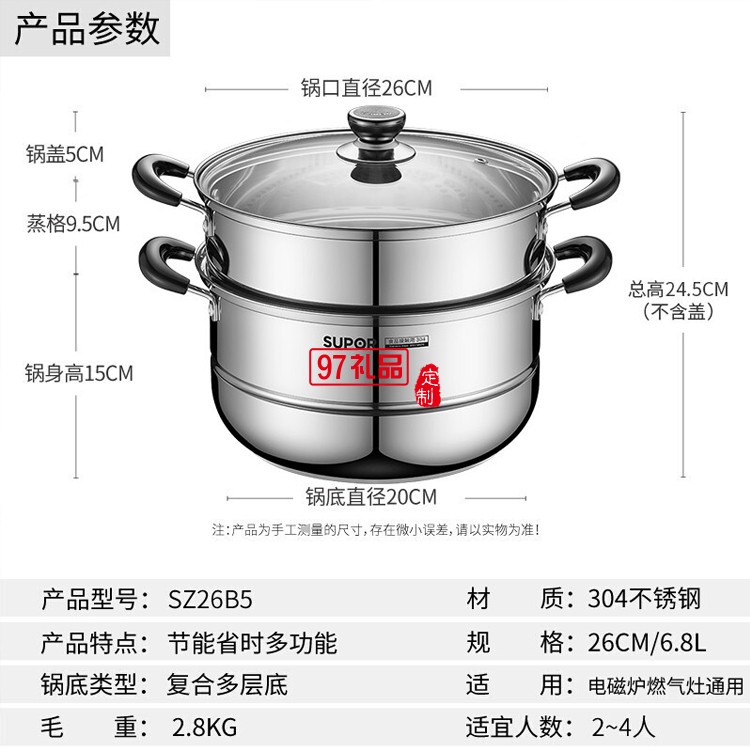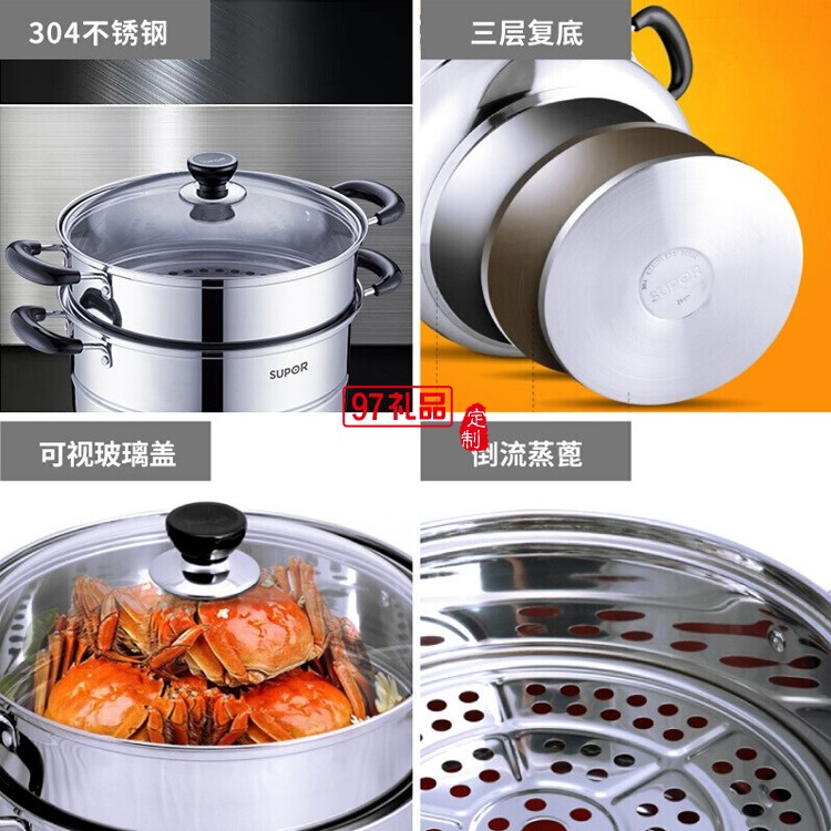 蘇泊爾304不銹鋼蒸鍋26cm雙層復底湯鍋SZ26B5定制公司廣告禮品