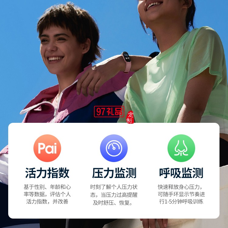 動態彩顯大屏,11種運動模式,50米防水 ②全新女性健康 ③磁吸式充電,14天超長續航