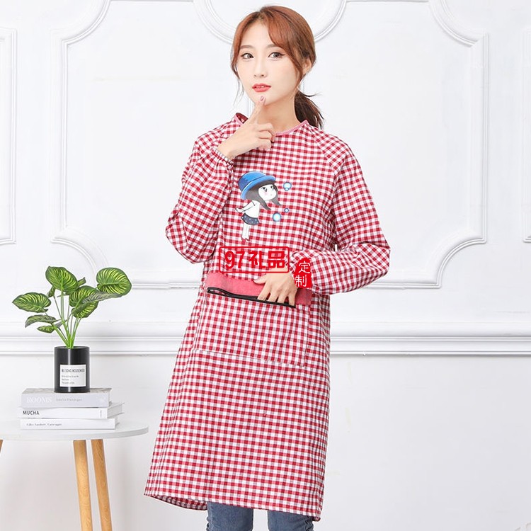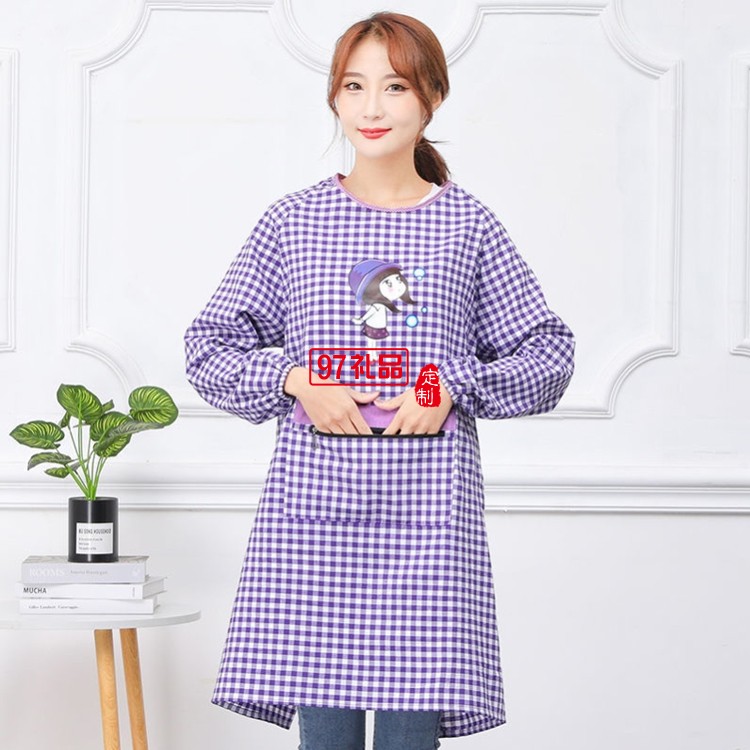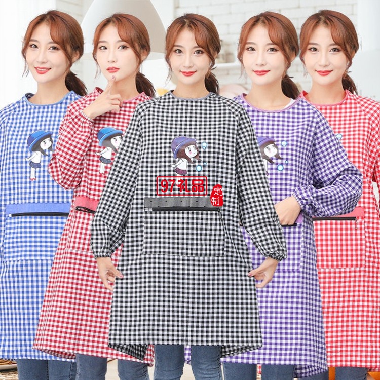 罩衣圍裙女長袖防污防油反穿成人廚房純棉罩衣圍腰定制公司廣告禮品