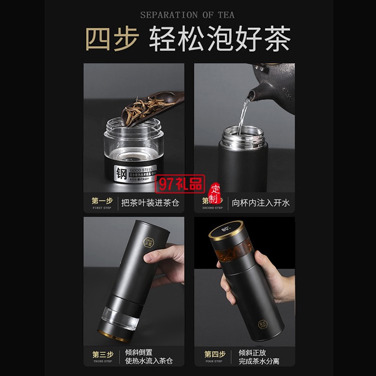 智能顯溫茶水分離保溫杯316不銹鋼KS21-WT803定制公司廣告禮品