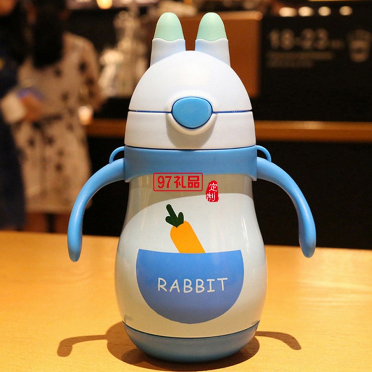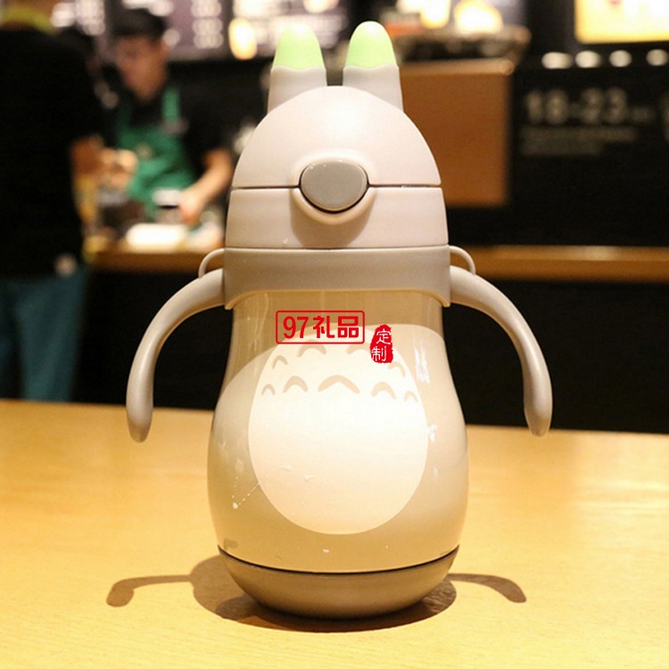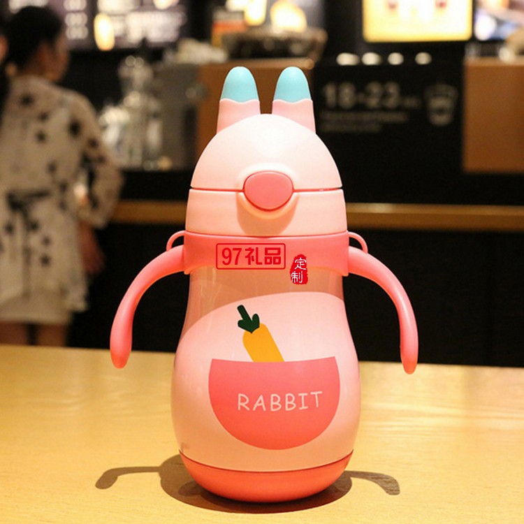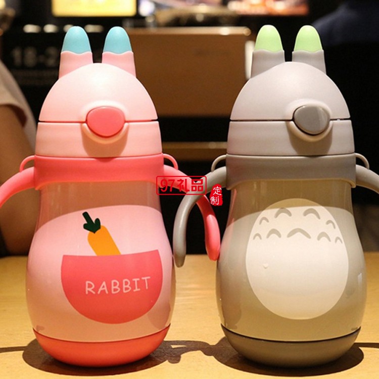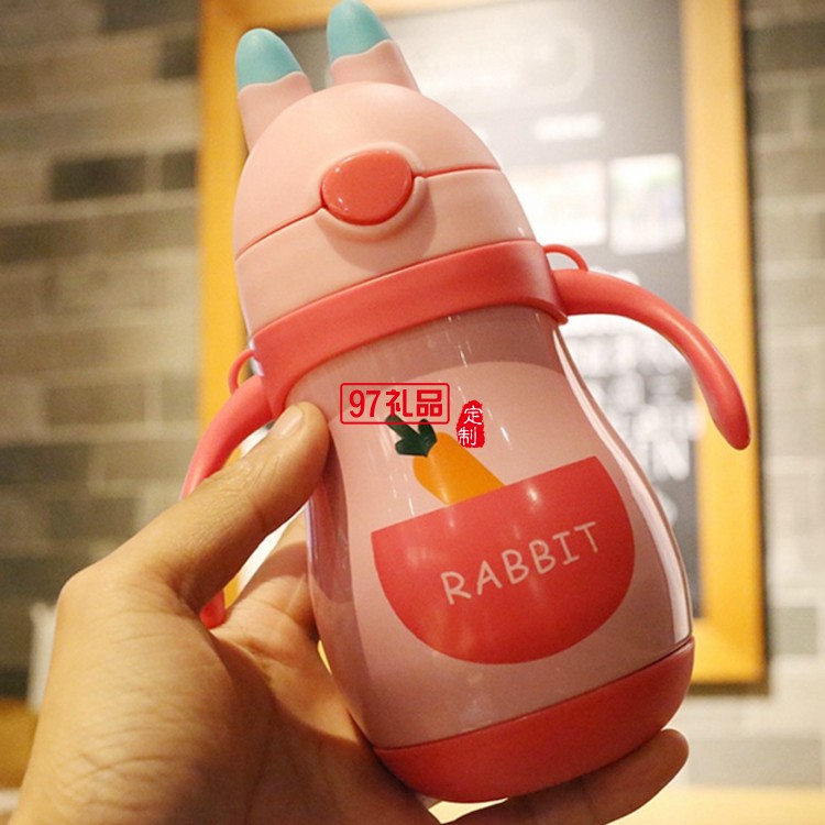 不銹鋼雙層保溫杯 手柄背帶一體 便攜水杯 卡通兒童保溫杯