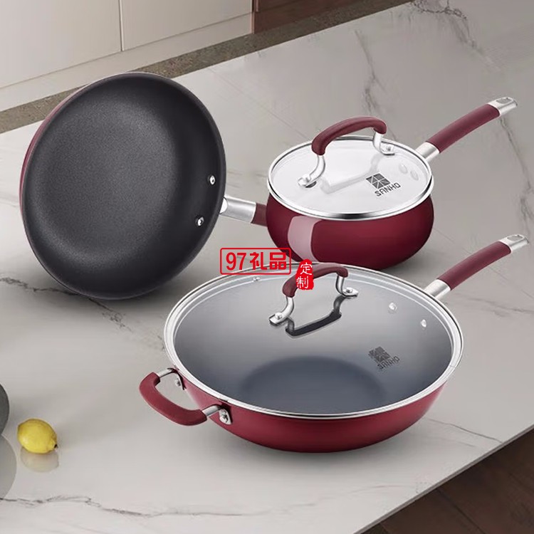 三禾鍋具T610套裝陶鑄等離子琺瑯不粘鍋三件套定制公司廣告禮品