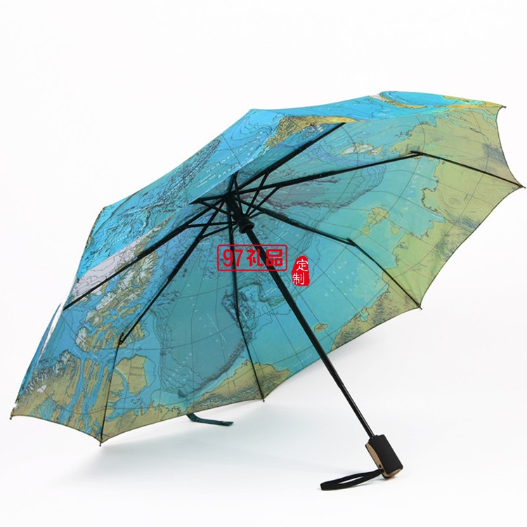 品名:三折自開收地圖傘 規格:60cm-8K 總長:62/30cm 口面直徑:103cm 裝箱量:50 把 毛凈重:20/19 kg 箱規:32/26/26cm 面料:高密防水碰起布 傘架:全鋼黑烤漆傘骨加玻纖 手柄:橡膠漆柄 單把克重:405g 單把包裝:本布套+OPP