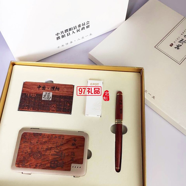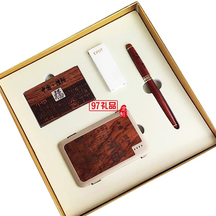 紅木套裝 三件套 名片盒+筆+移動(dòng)電源
