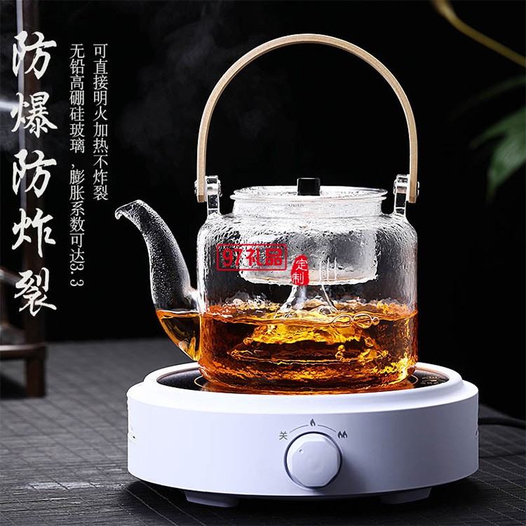 玻璃蒸煮兩用提梁壺 電陶爐煮茶爐茶壺定制公司廣告禮品