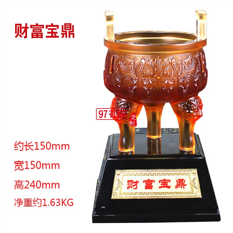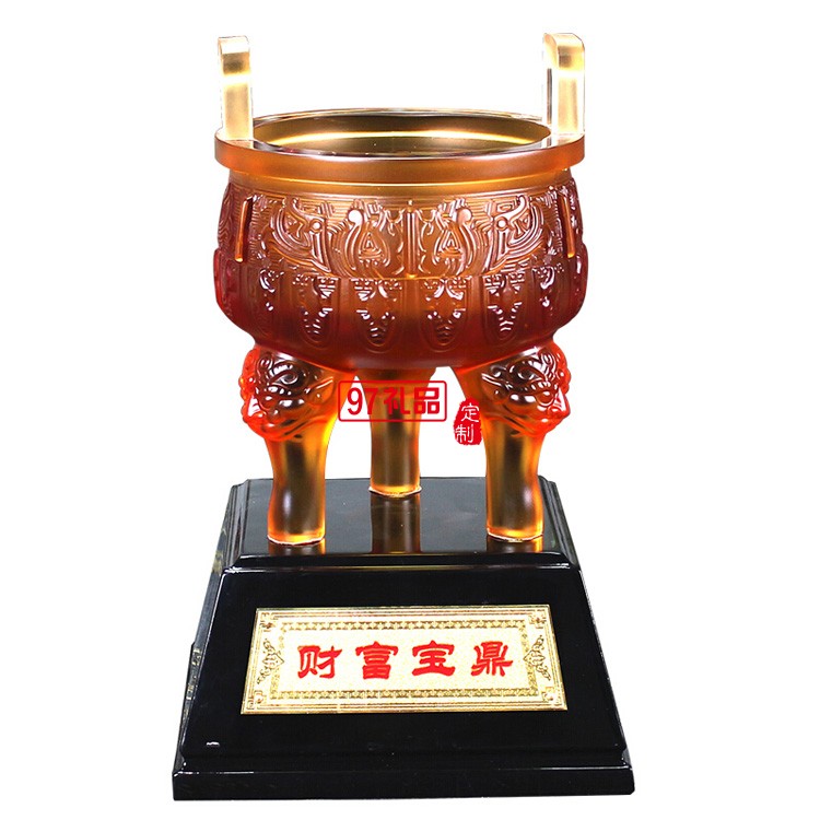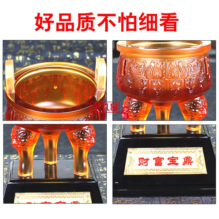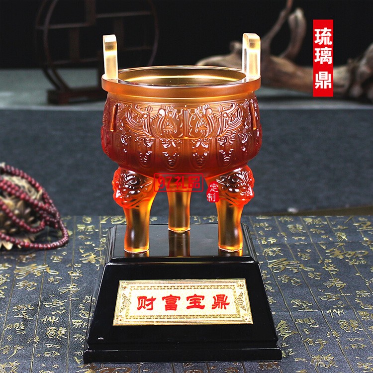 大號基業鼎盛琉璃鼎擺件古法琉璃工藝品 可定制LOGO