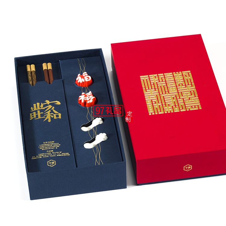 字器吉意杯筷箸套裝福祿壽禧財(cái)漢字文化杯中國(guó)風(fēng)喬遷禮品