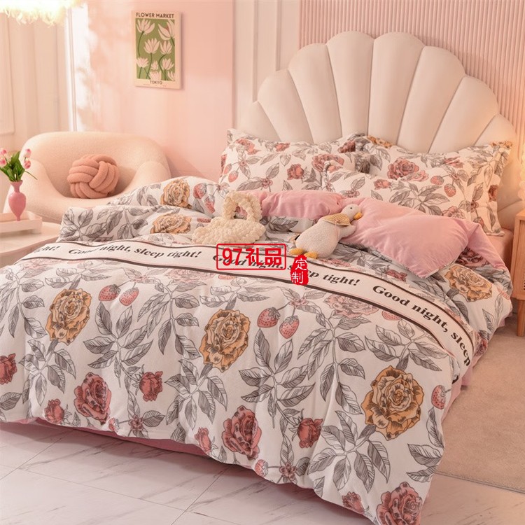 啄木鳥 牛奶絨四件套-錦上添花 ZMN-NNR001定制公司廣告禮品