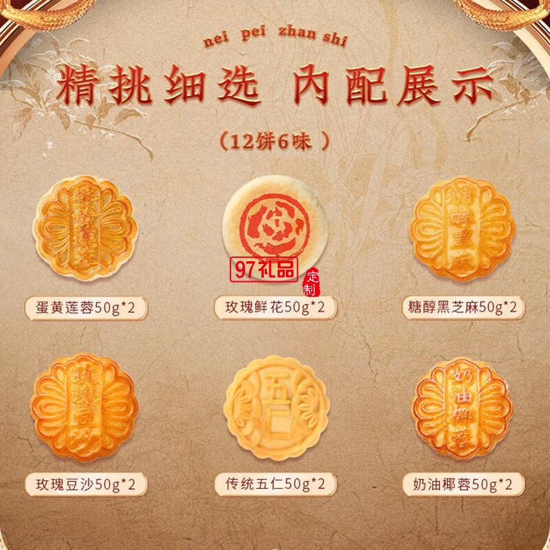 稻香村傳統老月餅五仁豆沙椰蓉混合中秋送禮團購 八月十五團圓禮6味12餅