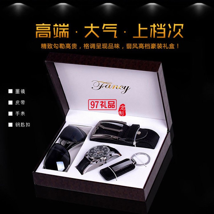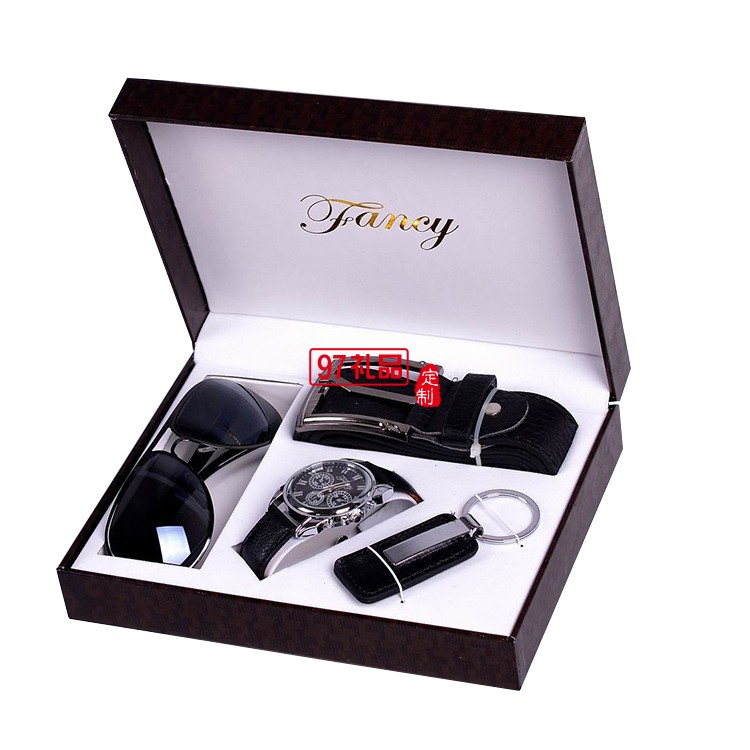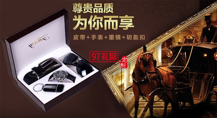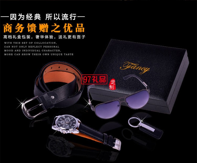 尺寸 皮帶+墨鏡+手表+鑰匙扣,4件套+禮品袋