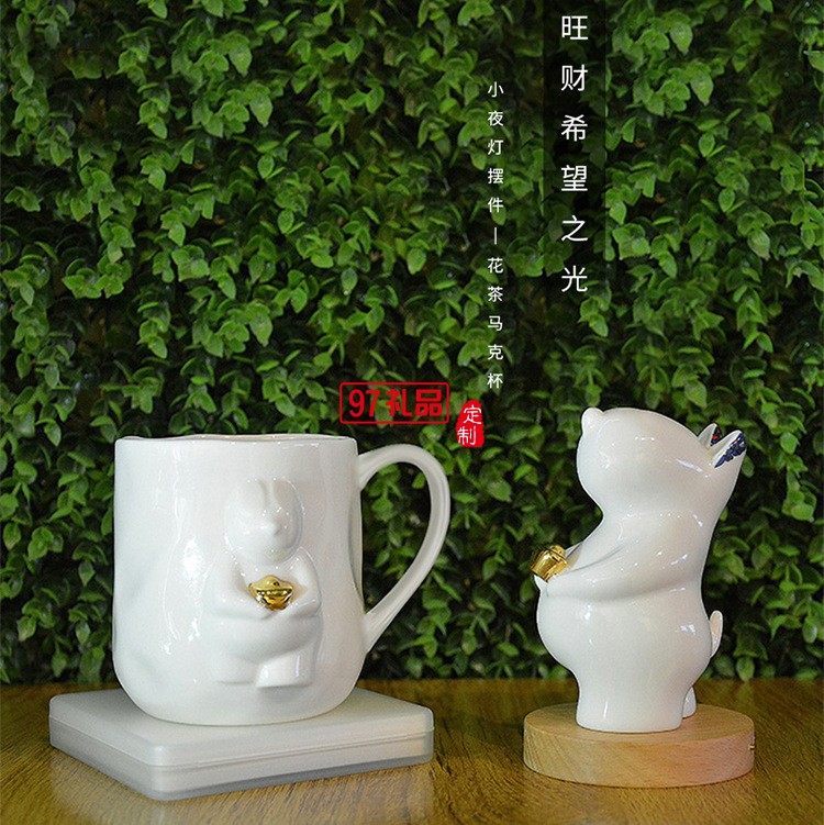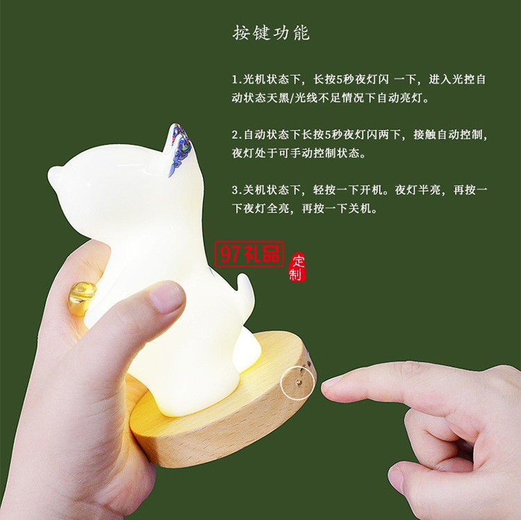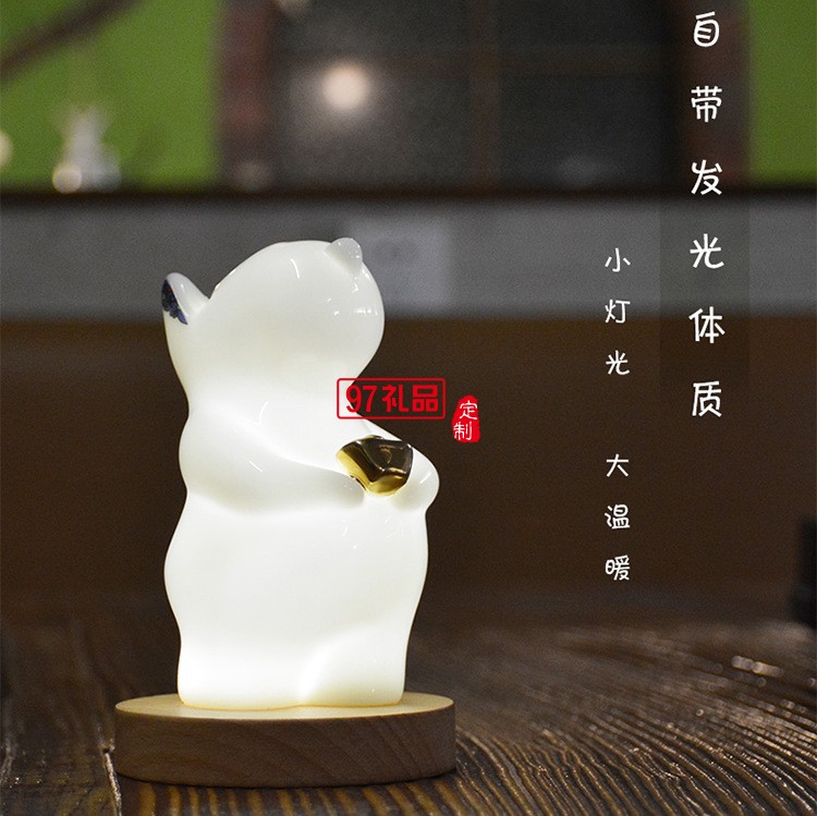 貴彬旺財陶瓷小夜燈LED光控充電擺件送客戶禮品定制