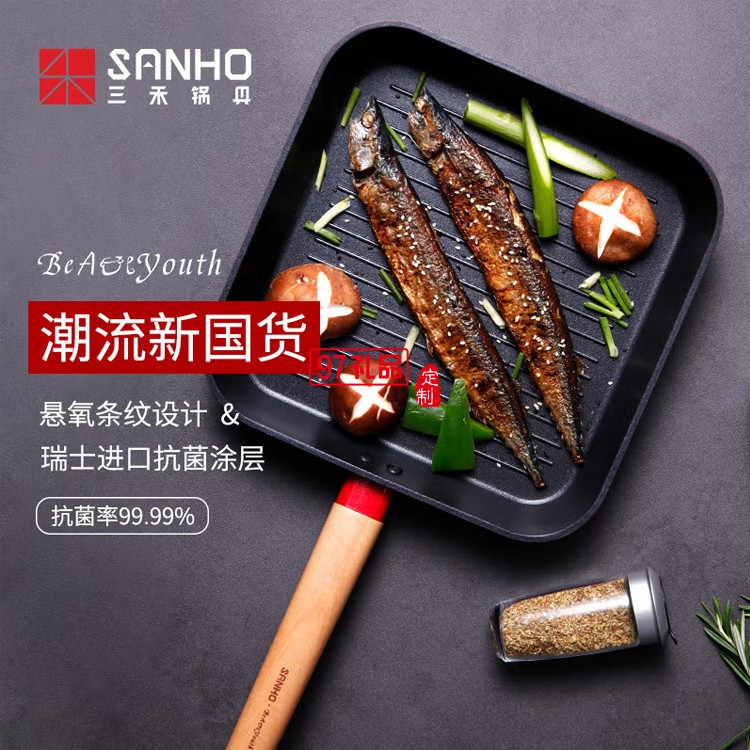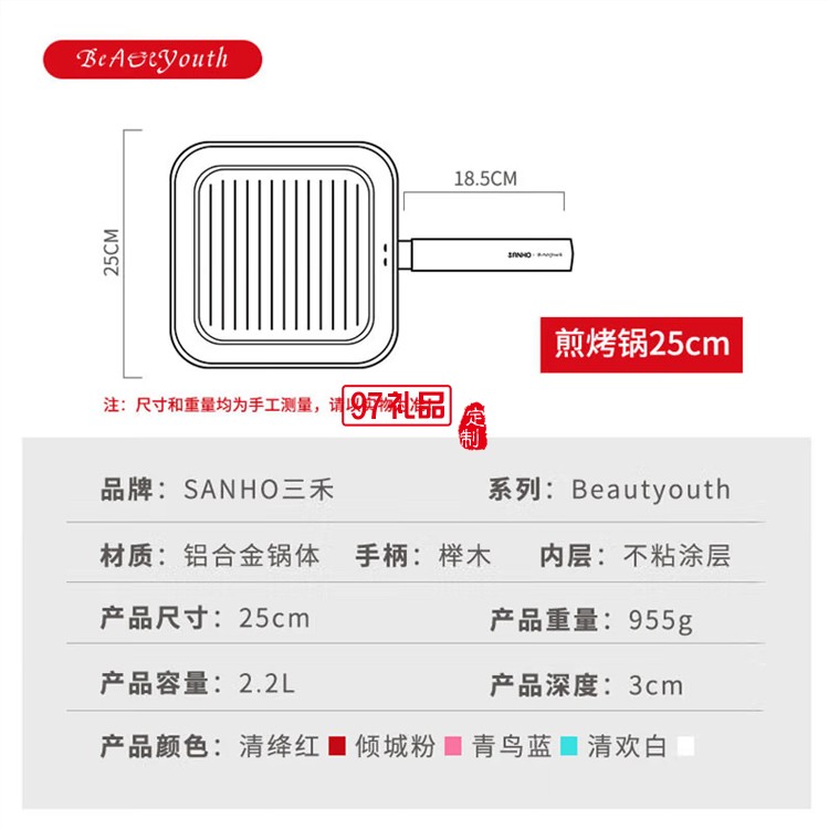 平底鍋牛排煎鍋專用條紋烙餅鍋煎鍋LJ2525E1定制公司廣告禮品
