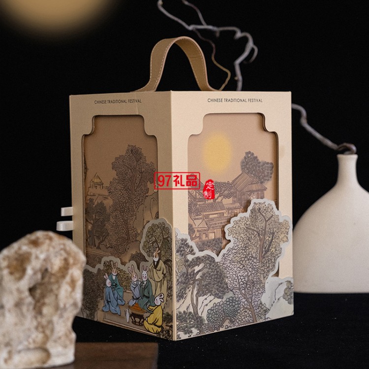 新款高檔中秋月餅禮盒裝新中式團購定制Logo送禮月餅禮盒
