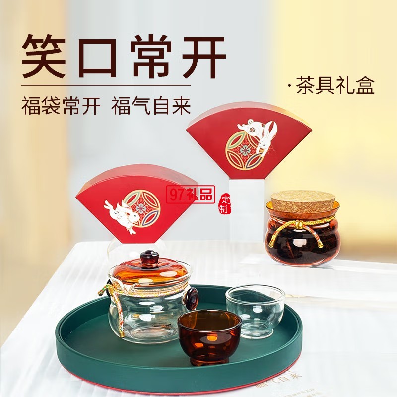 東客集笑口常開(kāi)茶具禮盒蓋碗一壺兩杯茶葉罐商務(wù)送禮中秋禮盒伴手禮