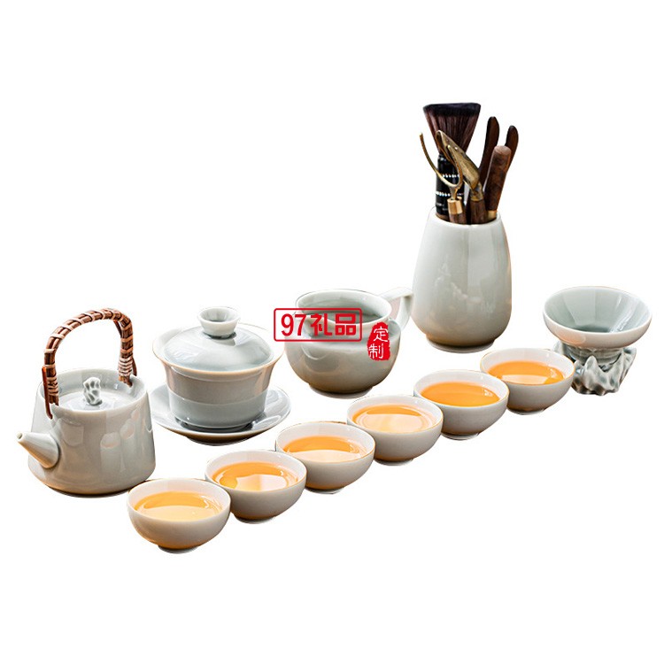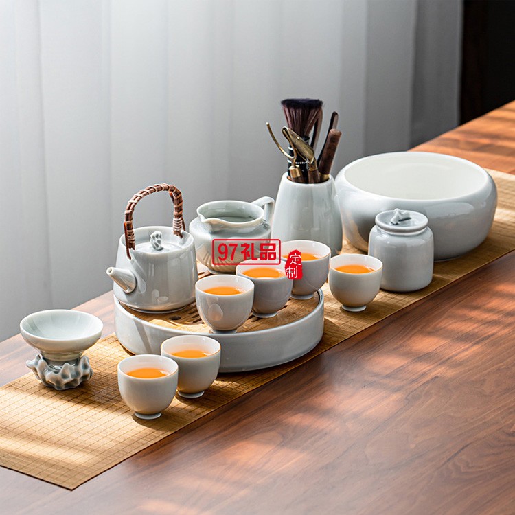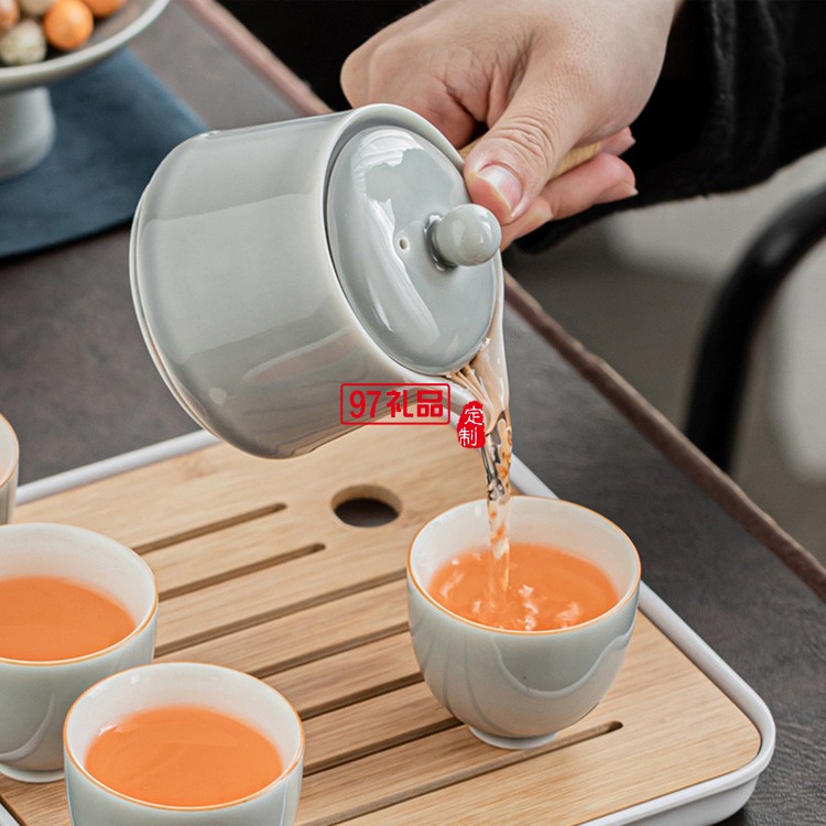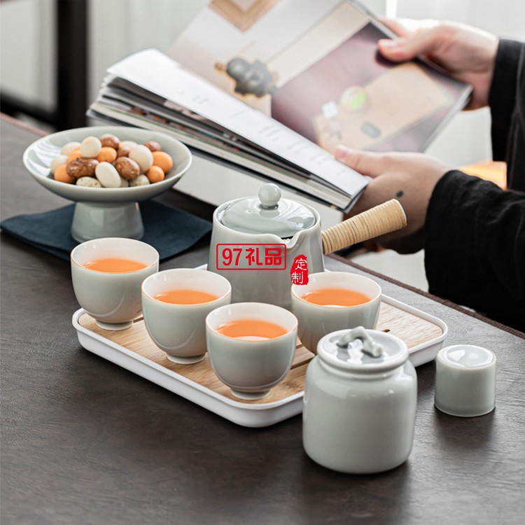 簡(jiǎn)約冰灰釉功夫茶具套裝家用小套辦公室陶瓷提梁壺
