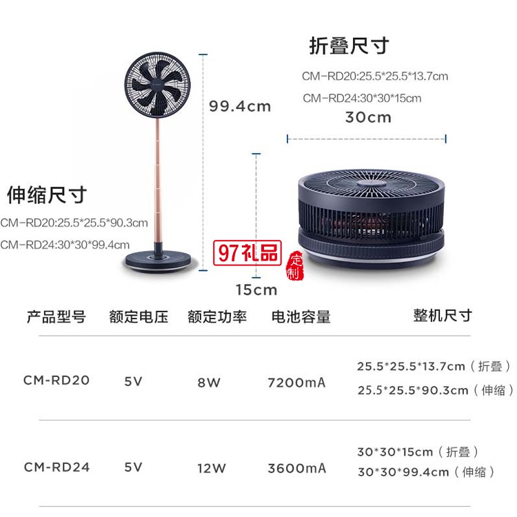 艾美特伸縮折疊扇桌面無線充電CM-RD20定制公司廣告禮品