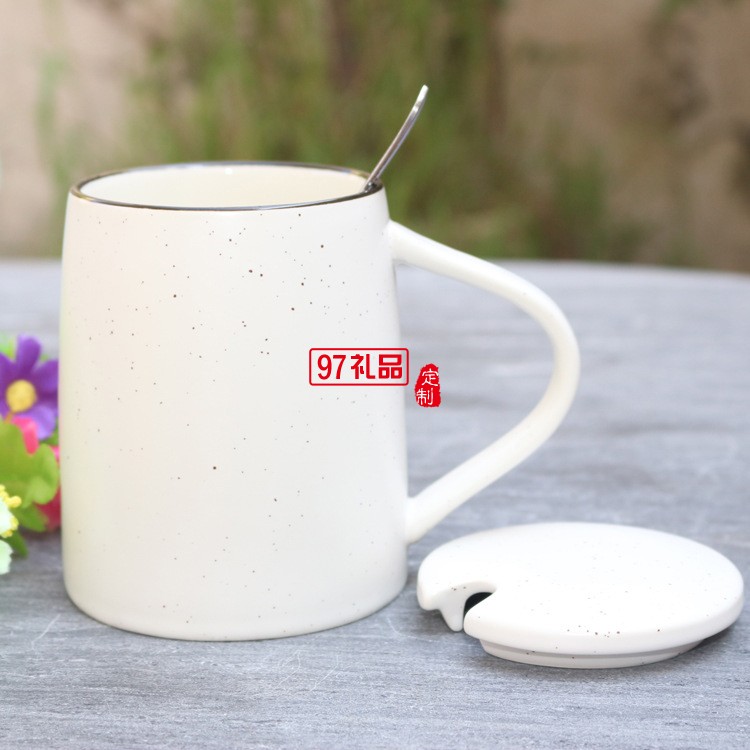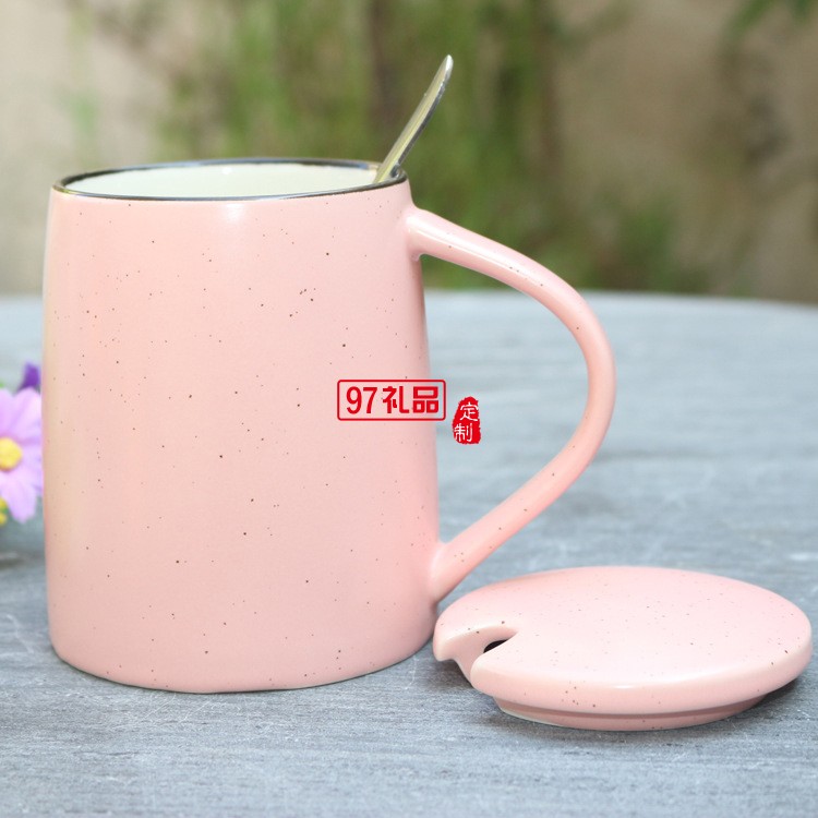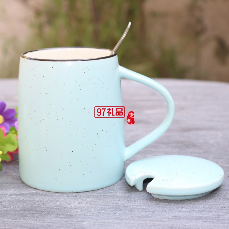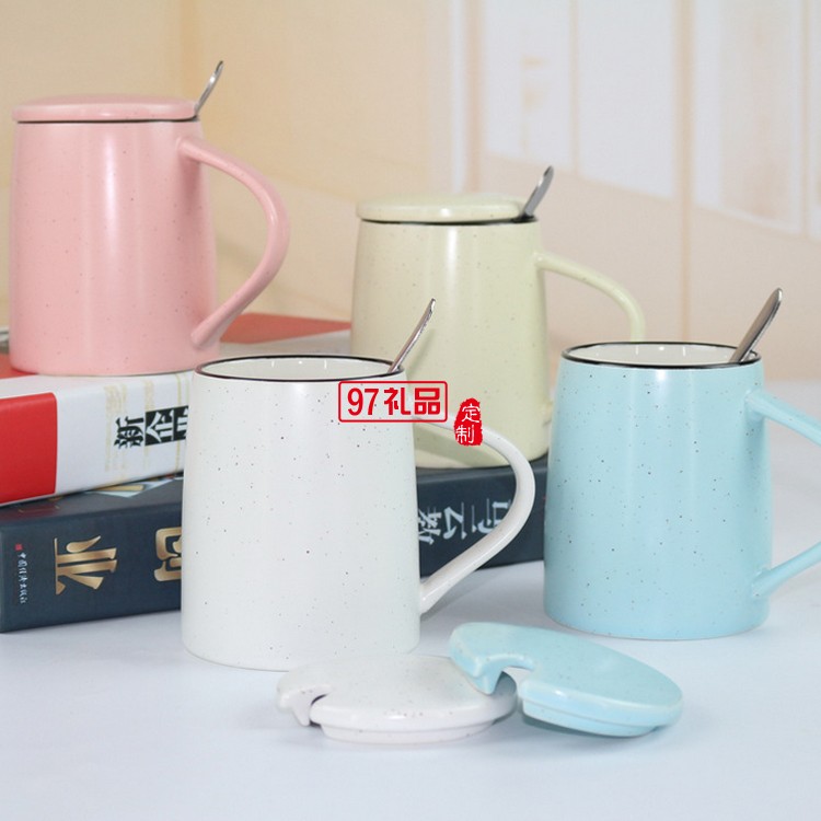 創意色釉陶瓷杯 帶勺子帶蓋子馬克杯 大容量早餐牛奶杯可印logo