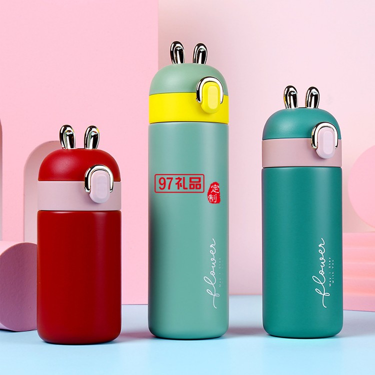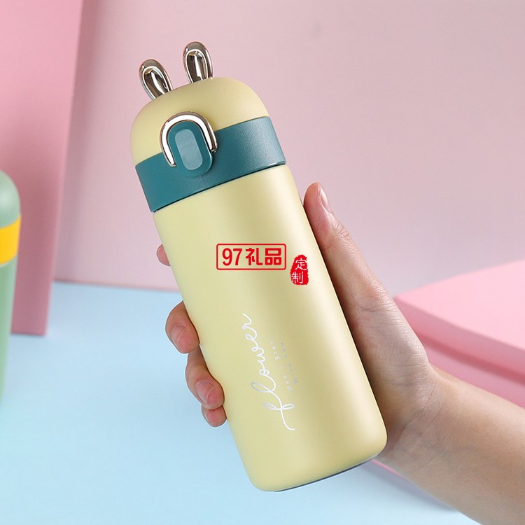 開學季禮品卡通兔耳朵兒童保溫水杯 糖果色可愛彈跳學生杯子
