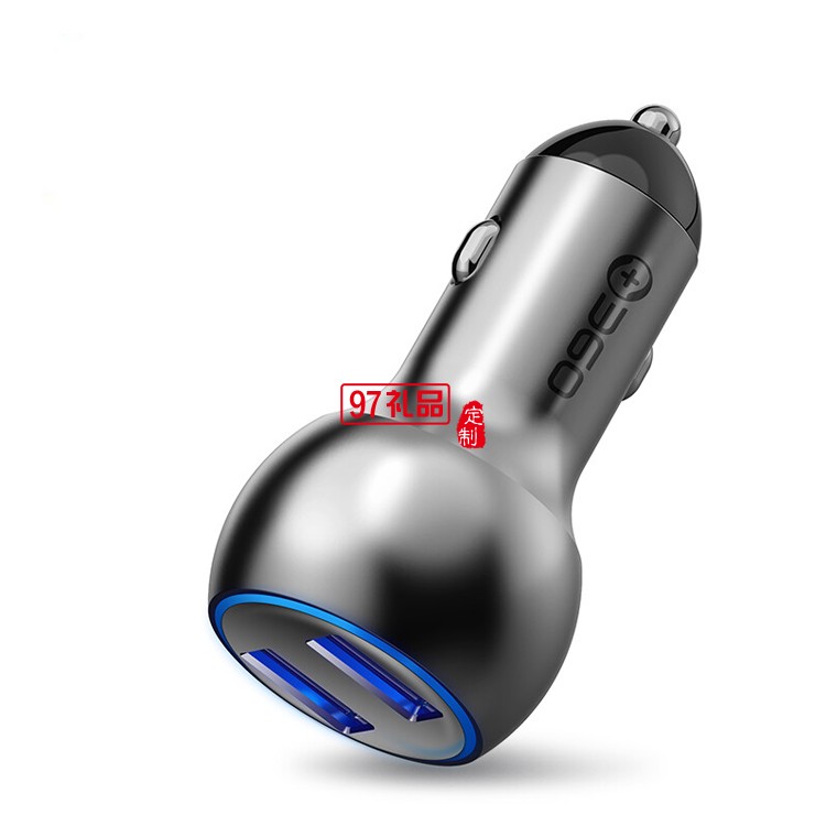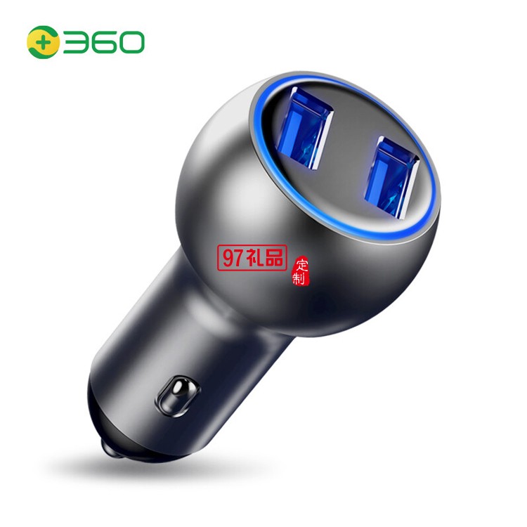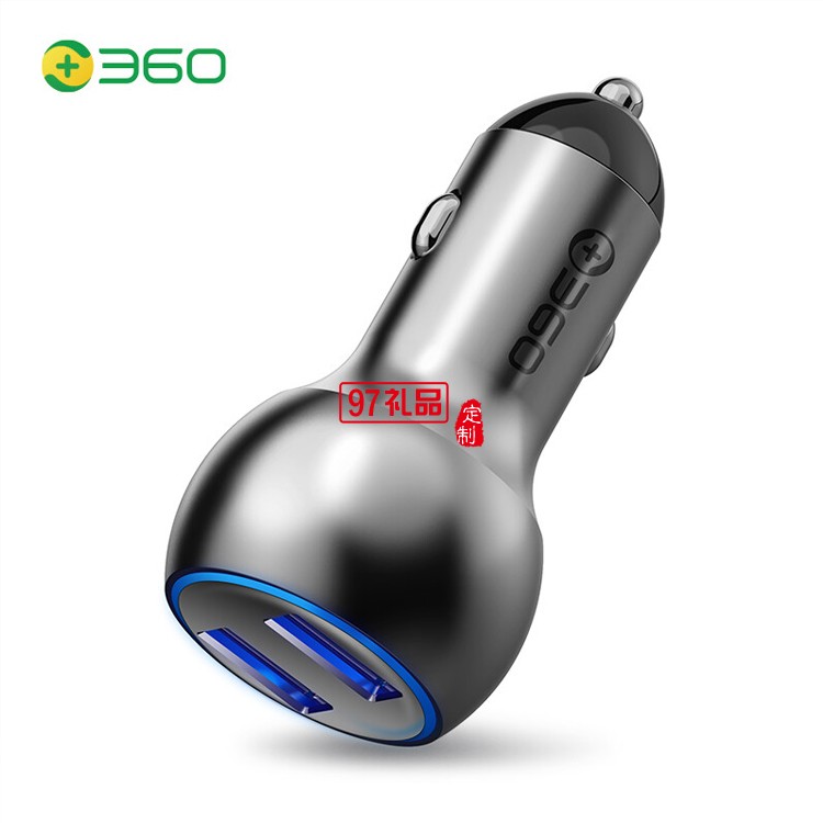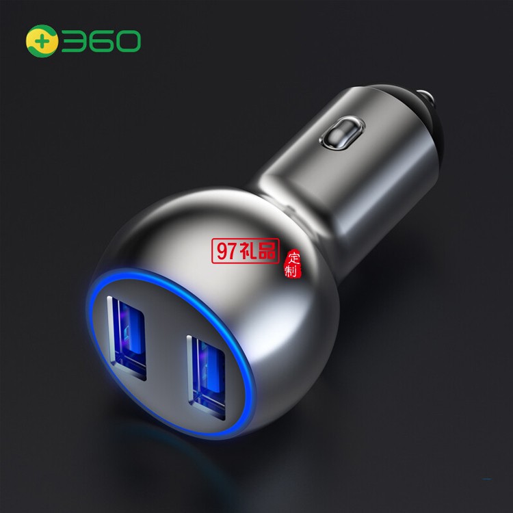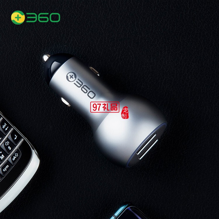360 車載充電器 C6 車充點(diǎn)煙器一拖二 銀色快充定制公司廣告禮品