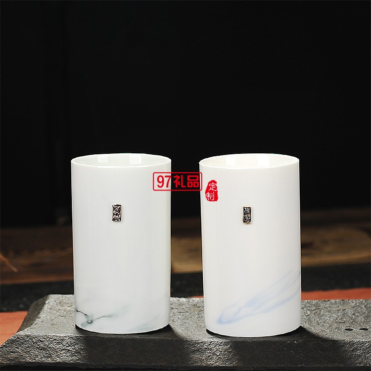 玉瓷對杯 簡約直身陶瓷情侶對杯 創意茶杯