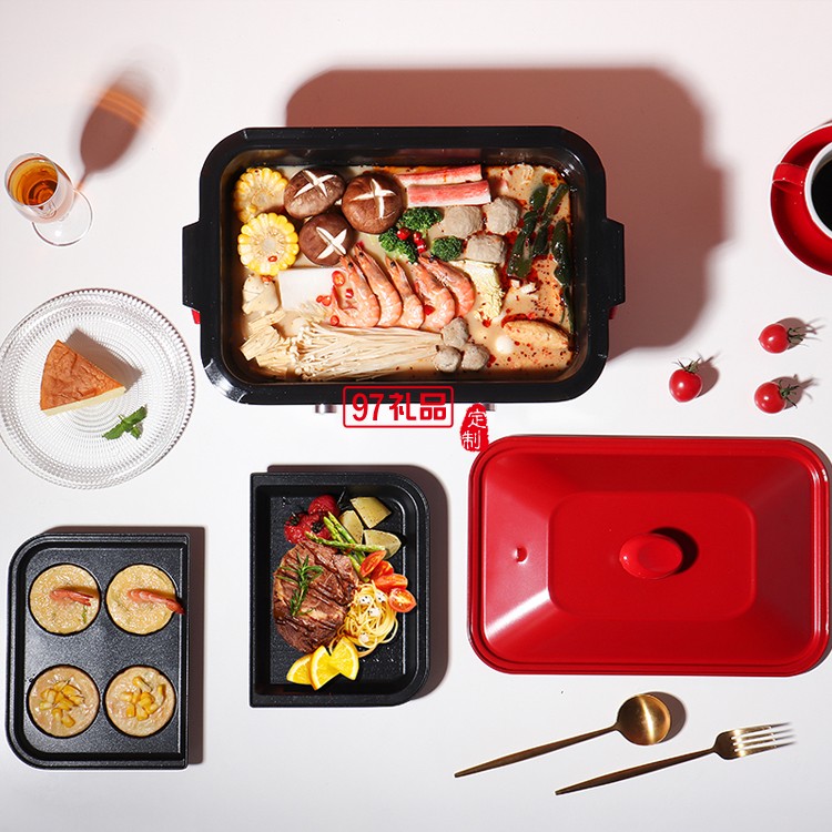 多功能料理鍋一體鍋電火鍋鍋燒烤家用廚房烤肉烹飪鍋定制公司廣告禮品
