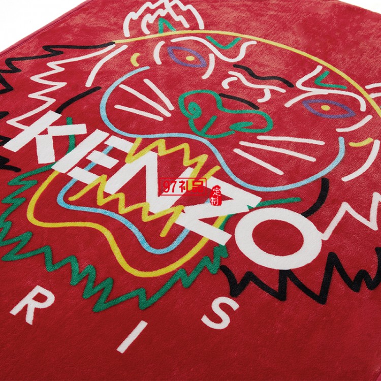KENZO經典法蘭絨炫彩虎頭毯(紅)