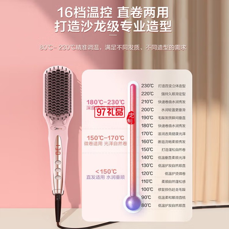 美的直發梳美發造型梳按摩梳棒直發器 MB-CF0101定制公司廣告禮品