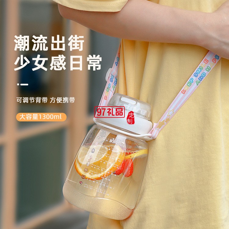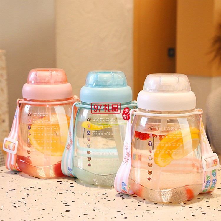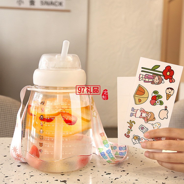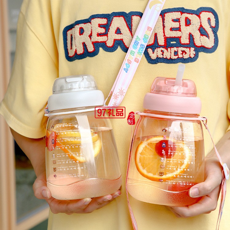 ins大肚塑料水杯帶背帶高顏值網紅便攜吸管杯超大容量水壺