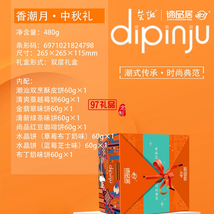 諦品居香潮月中秋月餅禮盒8個月餅8種口味480g團購送禮