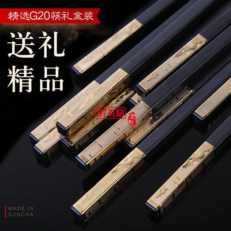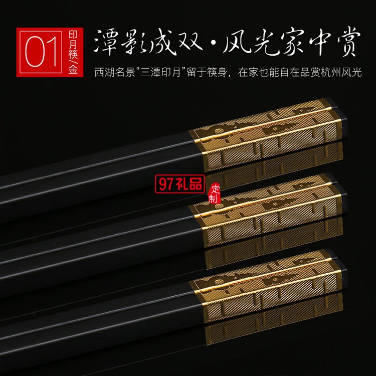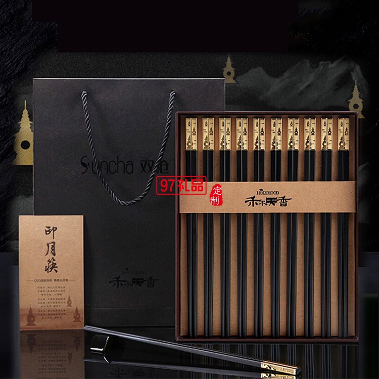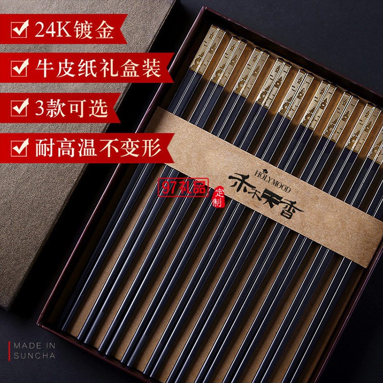 雙槍(Suncha)禾木天香 合金筷子鍍金筷子禮盒筷子套裝10雙裝