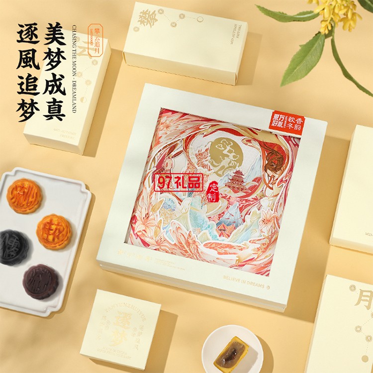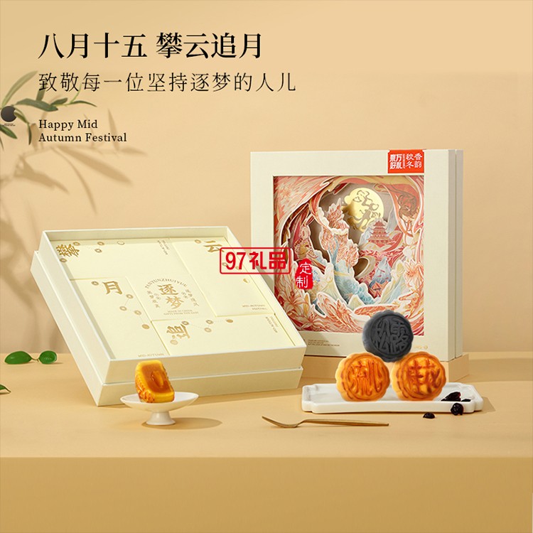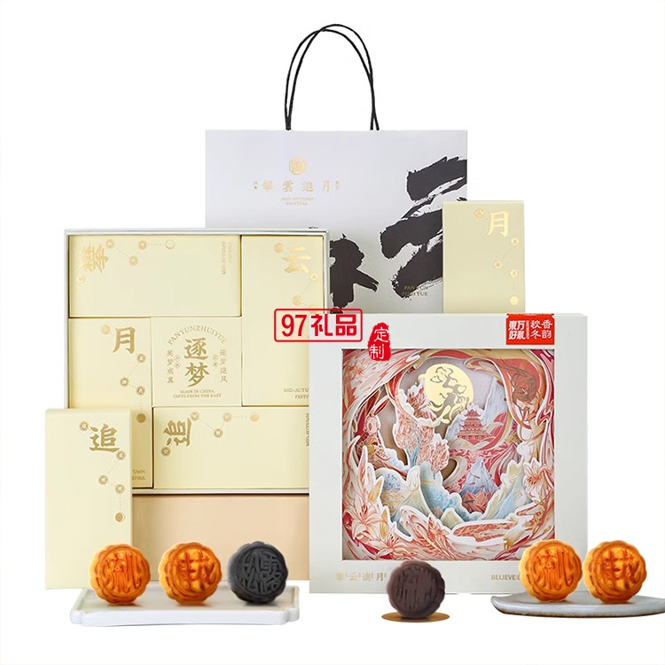 攀云追月中秋月餅禮盒裝流心奶黃港式月餅高檔送禮禮品團購定制