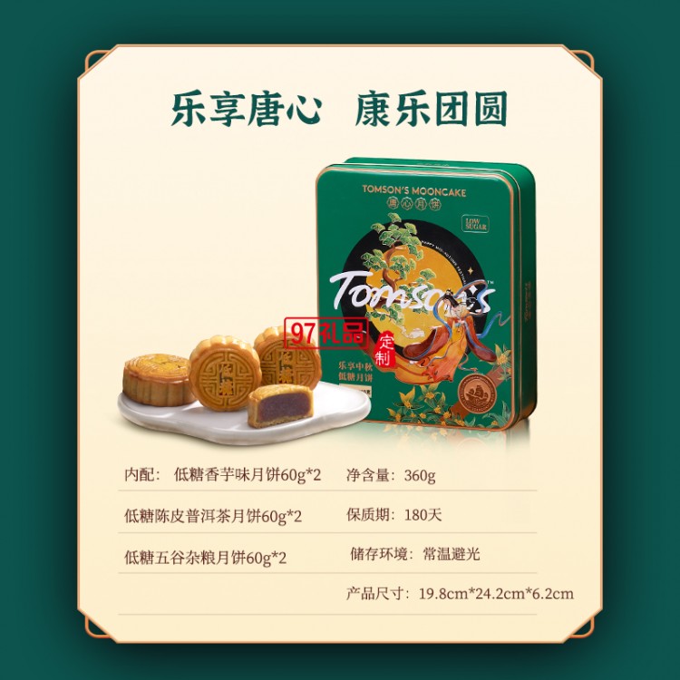 唐心樂享唐心廣式低糖松籽仁蓮蓉月餅360g禮盒裝中秋月餅送禮
