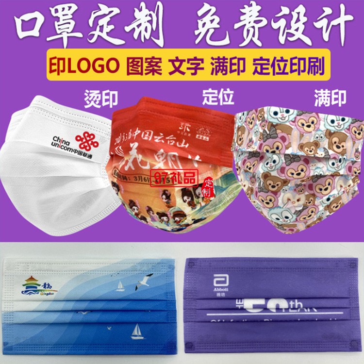 廣告口罩定制logo印字印圖案一次性三層企業宣傳定位印花口罩定制