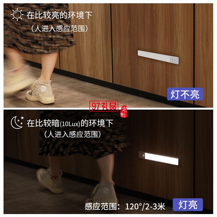 無線充電人體感應小夜燈免布線家用夜間過道LED燈條定制公司廣告禮品