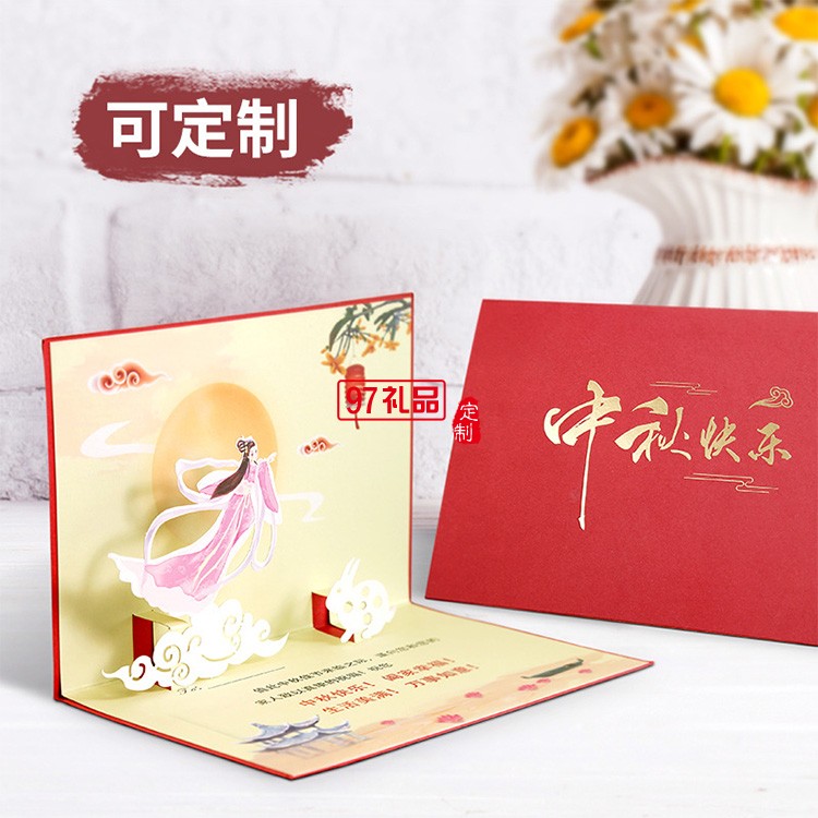 高檔燙金激光立體中秋賀卡企業定制員工3D中秋節禮品祝福卡片