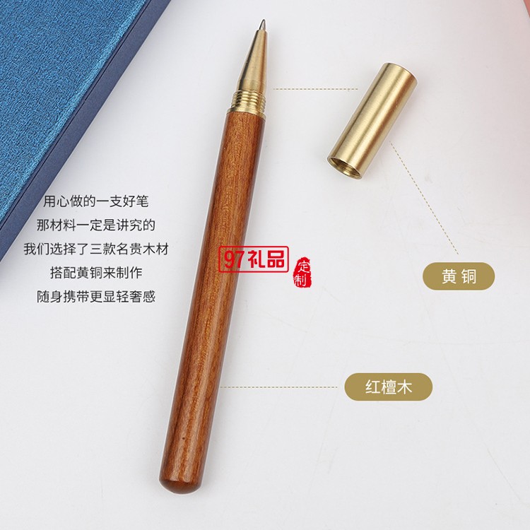 匠心之筆檀木紅木筆簽字筆寶珠筆金屬黃銅中性筆禮品商務定制logo