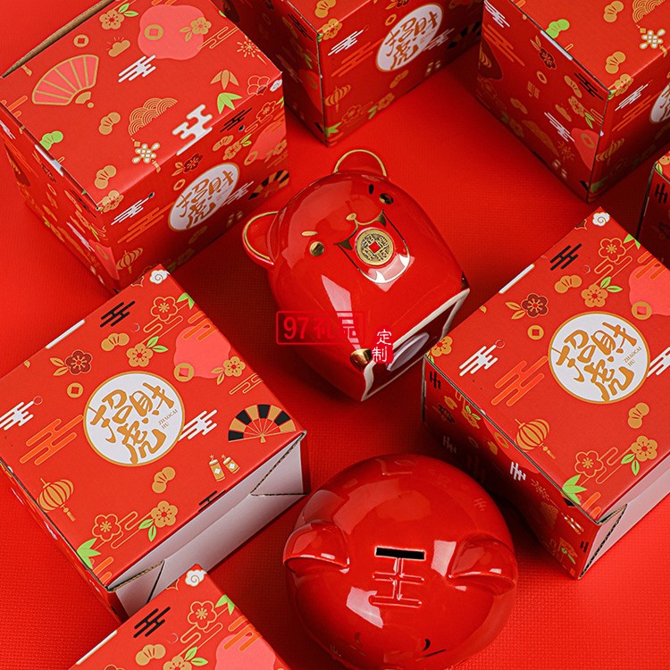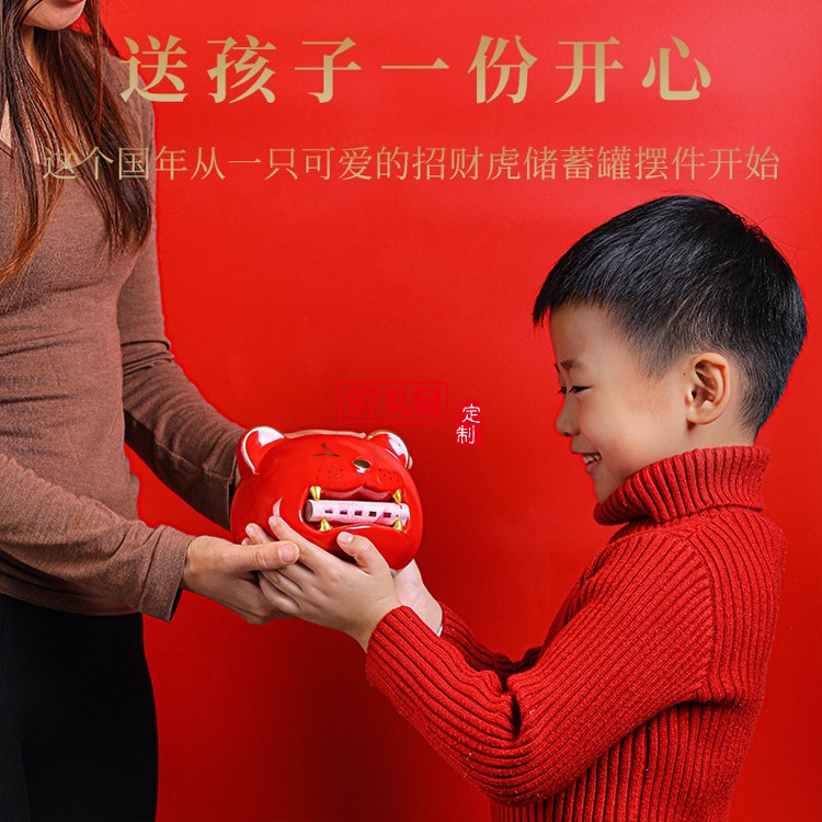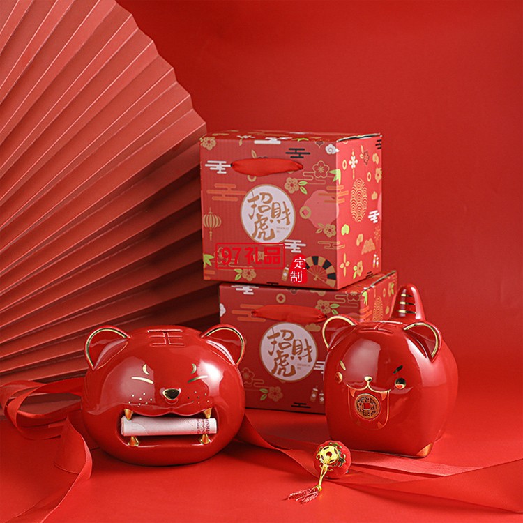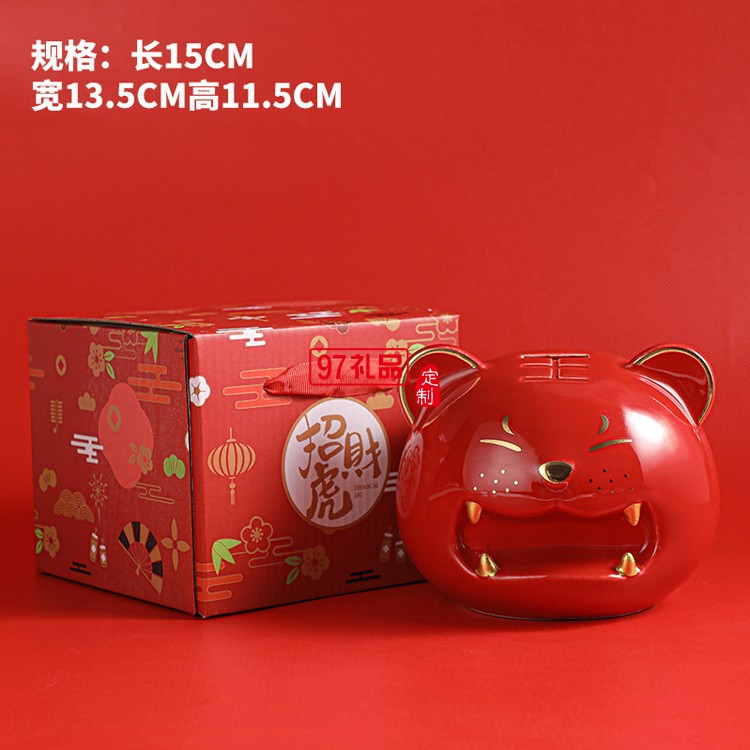 老虎儲蓄罐陶瓷生肖存錢罐虎年商務禮品地產(chǎn)保險公司年會伴手禮