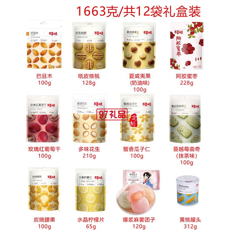 堅果禮盒 / 經典系列-堅果零食分享包百草味:1663g/共12袋禮盒