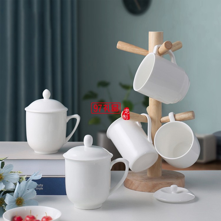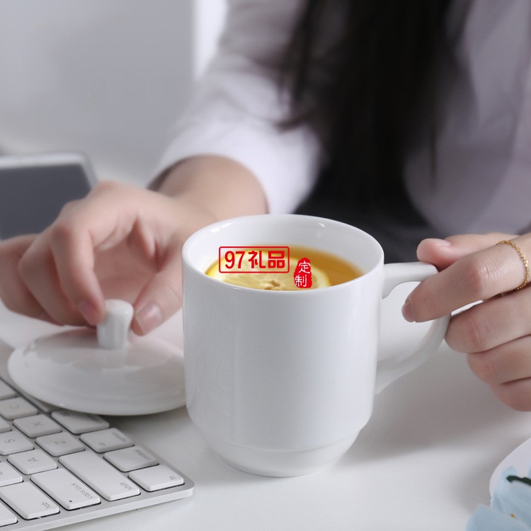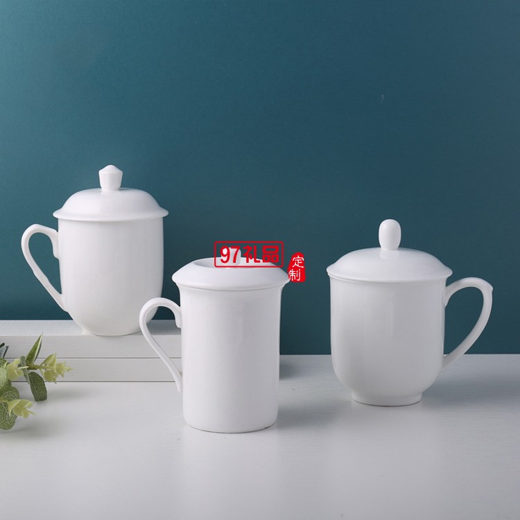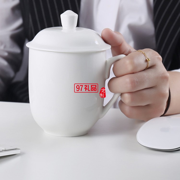 陶瓷水杯帶蓋 中南海式創意會議杯 可定制LOGO白