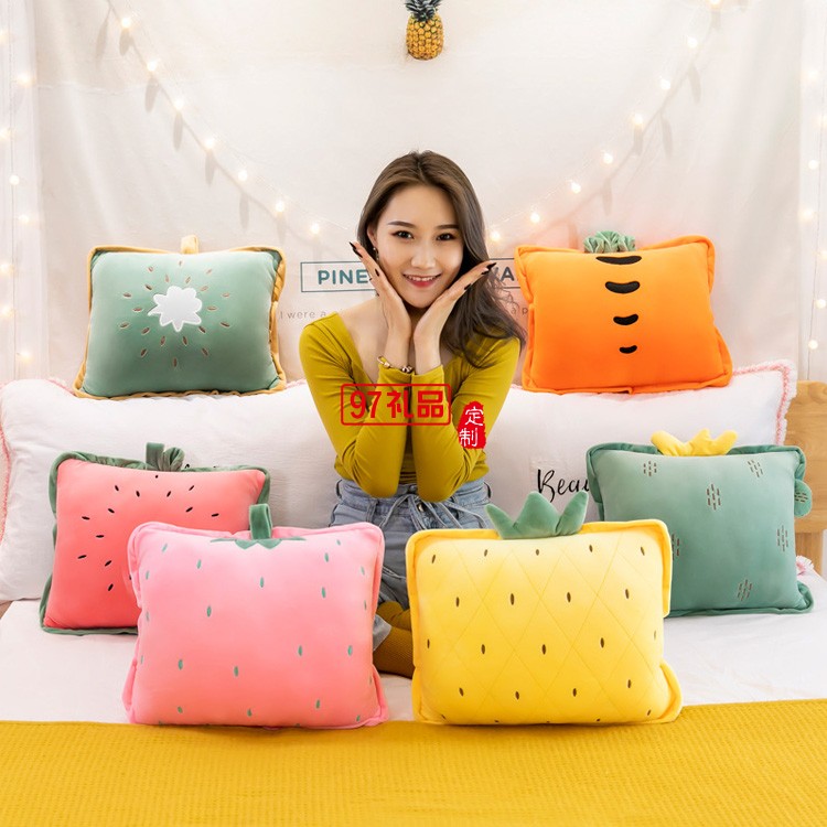 新款水果三合一空調被沙發靠墊抱枕被子兩用兒童午睡毯子